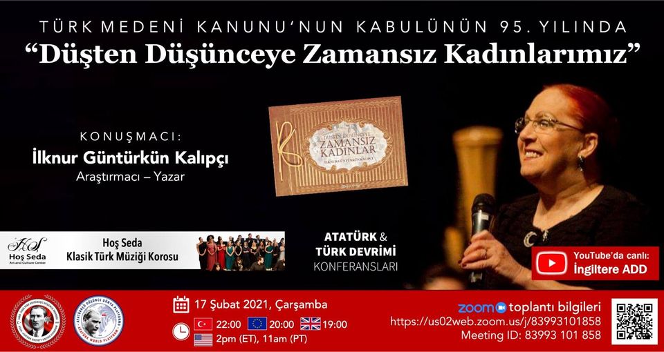 Değerli Üyeler,Dostlar Büyük Önderimiz Gazi Mustafa Kemal Atatürk’ün ilkeleri,devrimleri ve Cumhuriyet tarihini analizlerle inceleyerek toplumumuzu etkin bir şekilde bilgilendirmek amacıyla, İngiltere Atatürkçü Düşünce Derneği olarak başlattığımız “Atatürk ve Türk Devrimleri “programlarımıza devam ediyoruz.17 Şubat 2021 Çarşamba akşamı,Türk Medeni Kanunu’nun kabulünün
